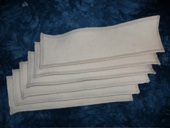 The Contoured Insert is about twice as absorbent with 3 layers of hemp, measuring approximately 4.5” x 12”, with each layer serged seperately, and all three sewn together at the ends.