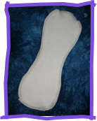 The Basic Doubler adds a thin layer but significant absorbency to a diaper. It is two layers of hemp fleece, measuring approximately 3” x 10”, serged around the edge.