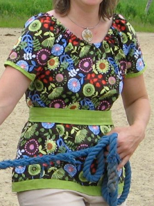 The SUMMER TOP is a comfortable, loose top. It is made from high quality cotton, with trim and a matching waistband from cotton. linen or a hemp blend fabric. E-mail for sizing.